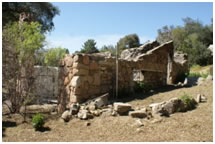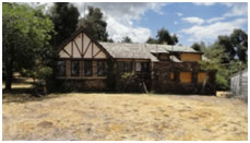Mack House, c. 1930. Built by the Lanes. This Tudor style home has period lead glass windows and a steeply sloped roof. Electricity was installed during the 1940's. This structure and outlying buildings are located on Highway 79, which roughly follows the Kumeyaay Trail.