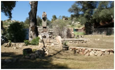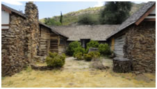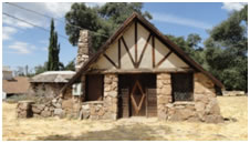 Descanso Park Cabin, 1926. Built by Peter Jacobs on Viejas Blvd. This A-frame rock cabin originally consisted of one room and a loft. It features a large